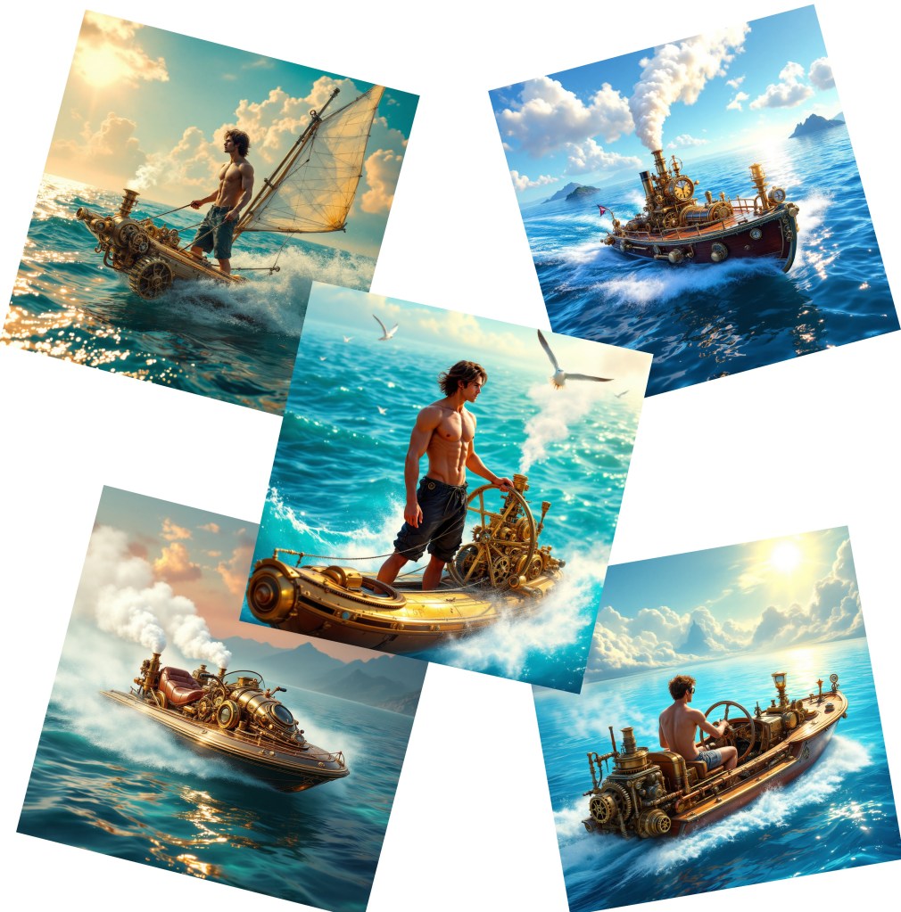 Top left- Steam powered Taxi, Top right- Aether/Magic powered Trolley, Bottom- Steam powered, with just a touch of magic, passenger Ferry (only way to reach Mytheholde from the mainland).